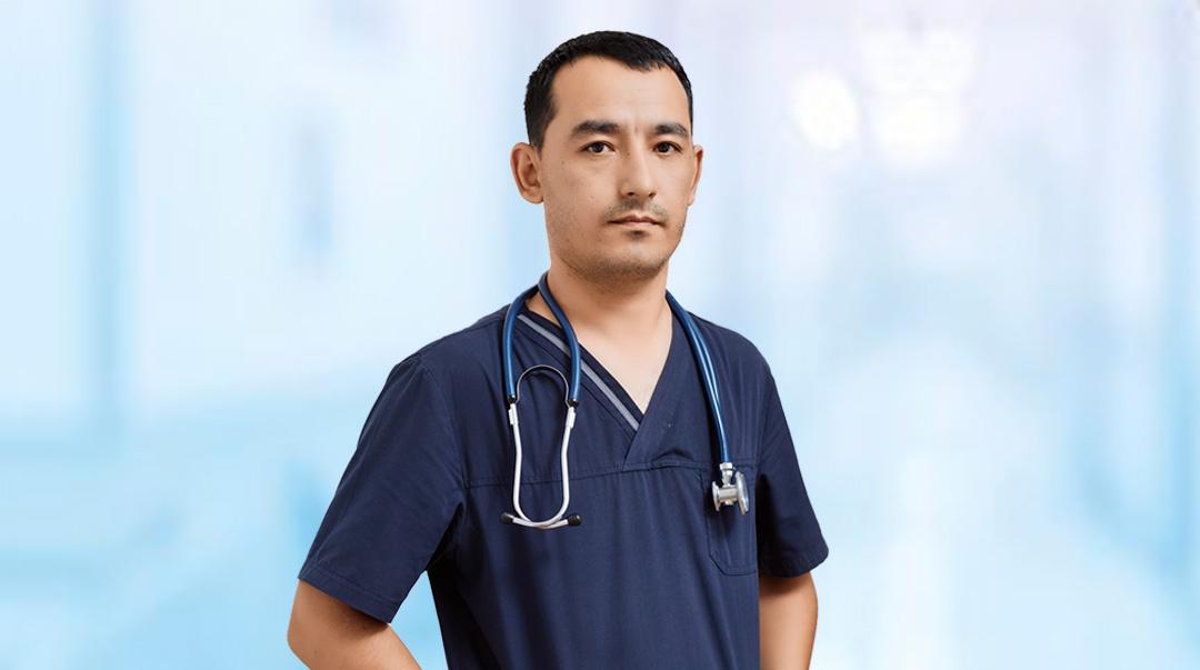 2017г.- окончил клиническую ординатуруна базе кафедры анестезиологии, реанимации и неотложной медицины Самаркандском филиале РНЦЭНМП